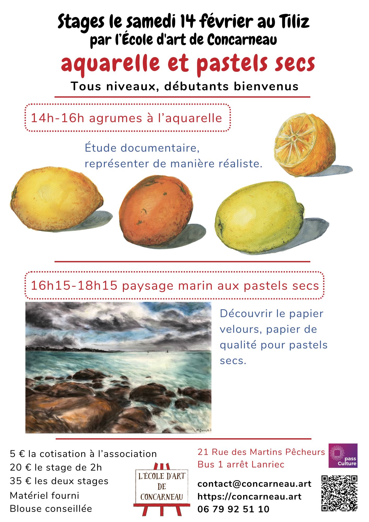Nous organisons deux stages le samedi 14 février, un d'aquarelle et un de pastels secs.